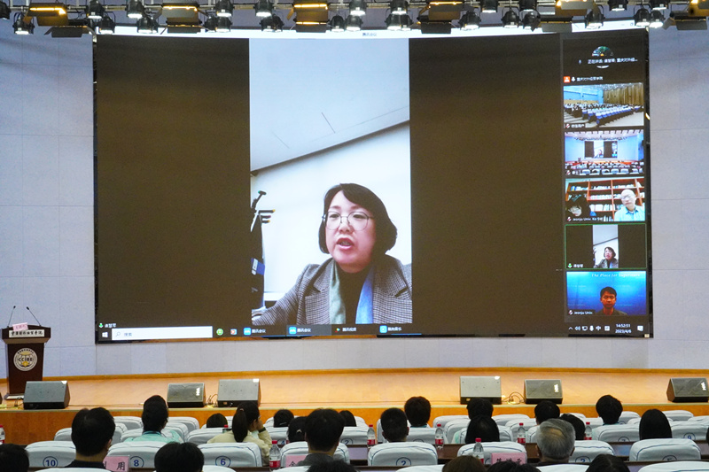 全州大学洪性德副校长、国际交流院褚慧琴院长、人工智能学部高仙佑教授等在线出席,并向国际班发来贺词。洪性德副校长对我校在国际班建设中付出的努力表示感谢,对同学们顺利赴韩学习表示期待,全州大学将竭尽全力做好教学和服务,确保国际班的同学学有所成。