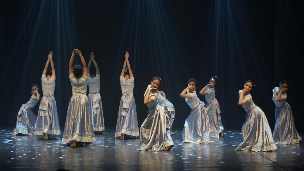 同学们将中国古典舞基本功跳、转、翻、控制等训练内容进行了充分展示,包括《空山》《满江红》《丹凤求凰》《叠彩云雾》《下肢》《出水莲》等节目,柔美的身体姿态与娴熟的技术技巧,博得现场观众们阵阵喝彩。