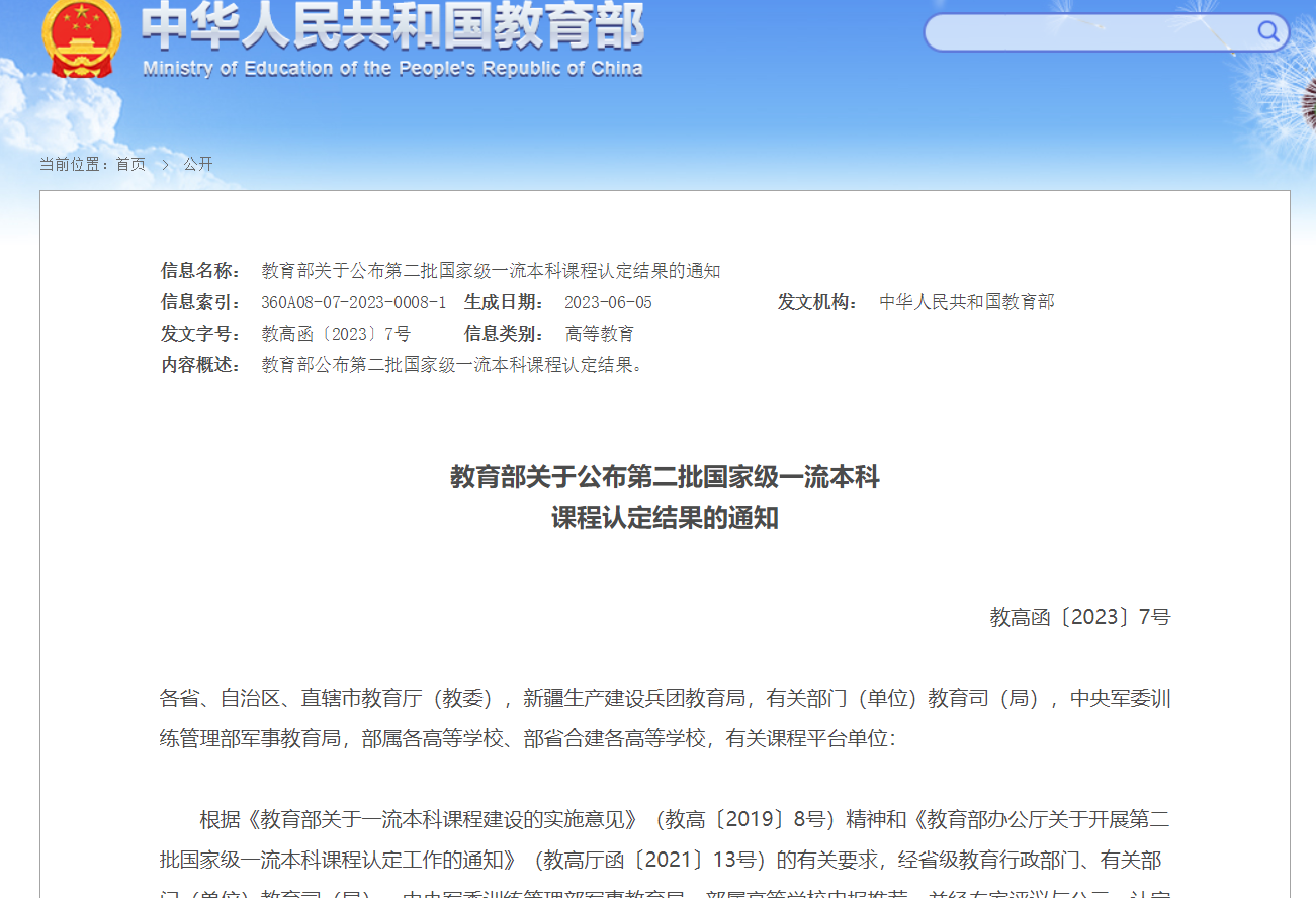 近日,教育部印发《教育部关于公布第二批国家级一流本科课程认定结果的通知》(教高函〔2023〕7号),正式公布了第二批国家级一流本科课程认定结果,学校外语外贸学院王玉云教授负责的《高级商务英语》课程被认定为国家级一流本科课程(线下课程),实现了学校国家级一流本科课程零的突破,在课程建设方面具有里程碑意义。