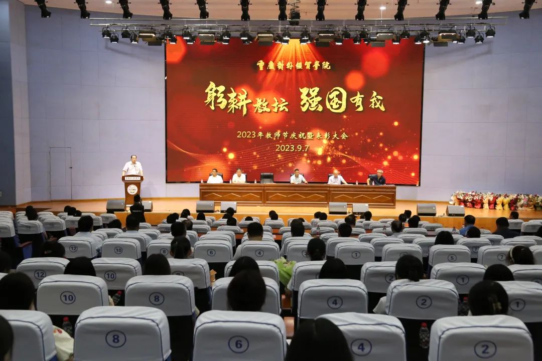 9月7日,学校在A校区9101报告厅召开2023年教师节庆祝暨表彰大会。在本次大会上,校领导们为获得市级、校级表彰奖励的教职工代表颁奖。校长李明海教授、党委书记(督导专员)何大海以及在家校领导在主席台就坐。大会由常务副校长王乃武副教授主持。