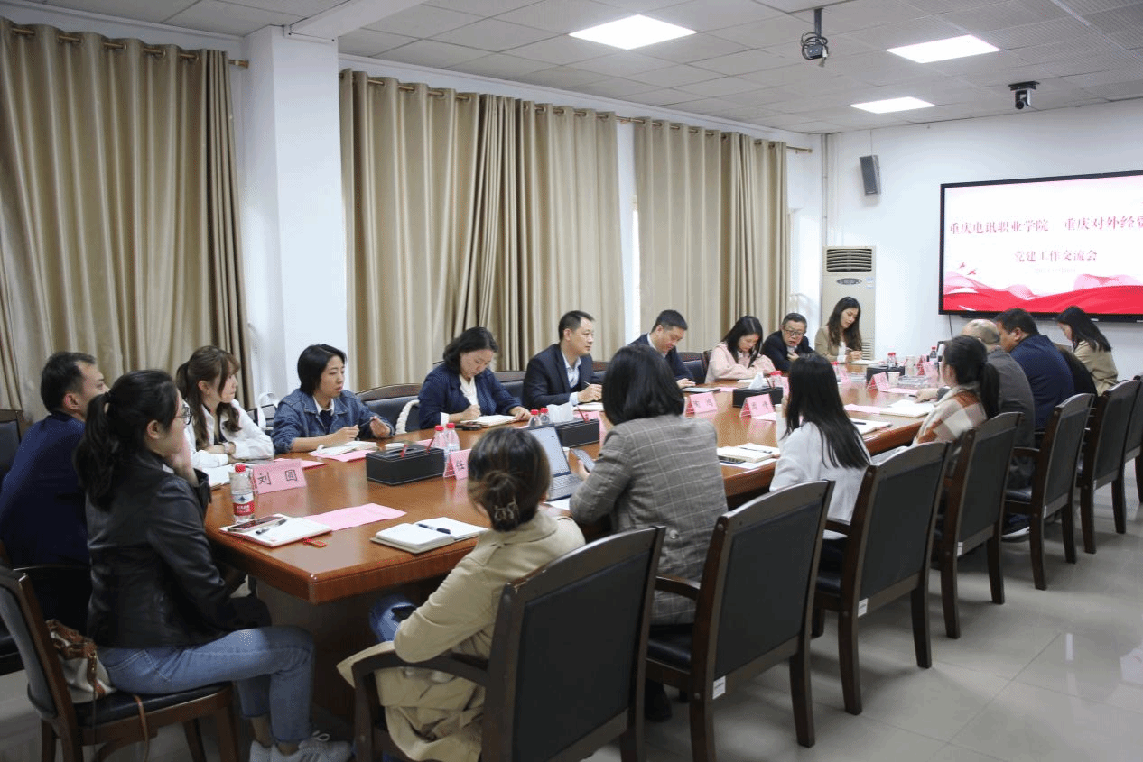 10月19日下午,重庆电讯职业学院党委书记兰海涛一行到校交流党建工作。学校党委书记、督导专员何大海,组织部、宣传部、相关二级学院党总支书记、组织员、样板支部书记参加交流活动。