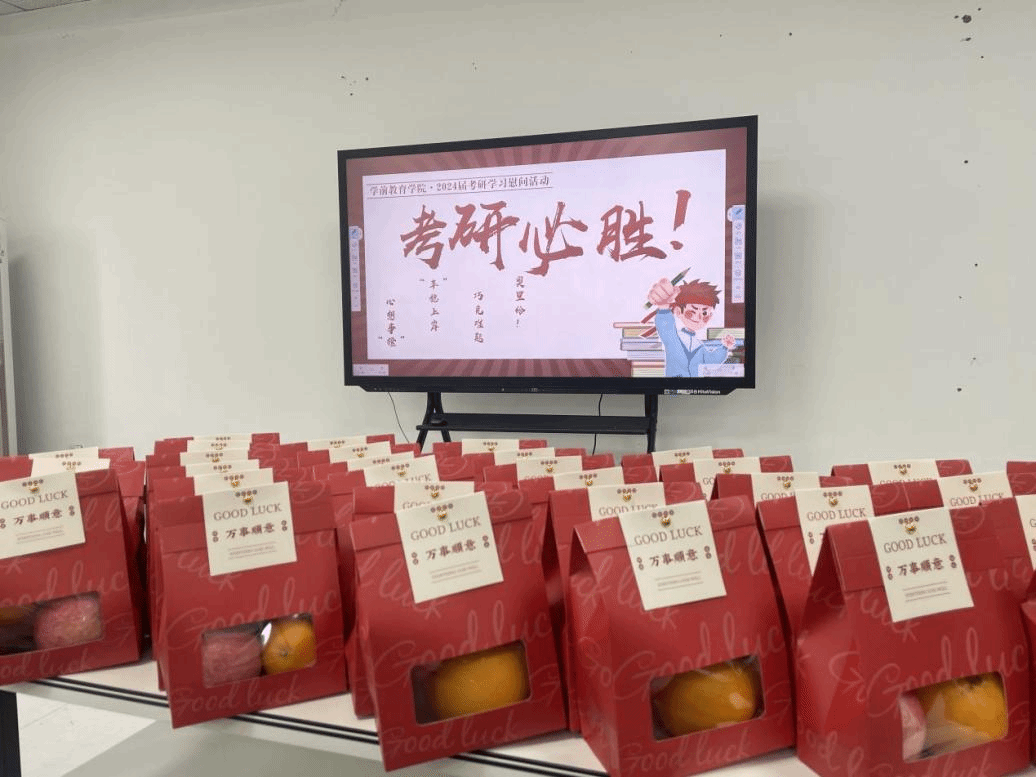 2024届全国硕士研究生招生考试在即,为缓解考研学子的备考压力,增强学生的迎考信心,全方位为考研学子保驾护航,学校于2023年12月4日-15日期间指导各学院从考前学生心理调适指导、冲刺阶段专业指导与经验分享、考研学生慰问等方面多措并举为学生提供考前服务及关怀慰问工作。