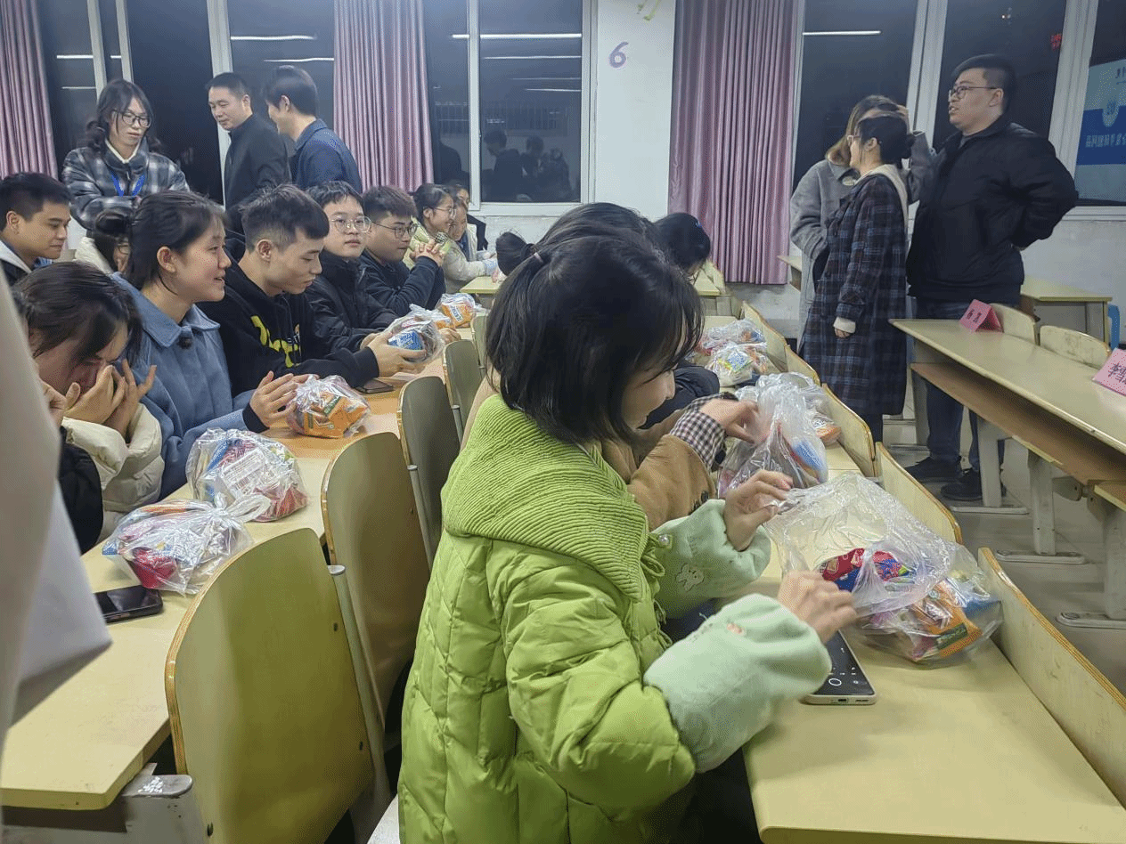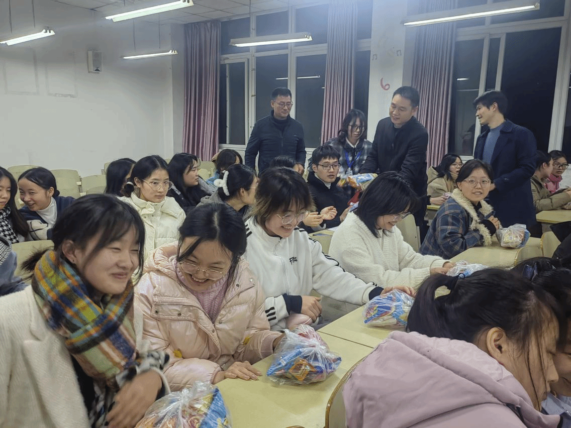 活动最后,学院领导班子和老师们为考研学子们送上了带着美好祝愿的“考研加油包”和暖心小毛毯。寄托着美好期望的加油包、暖心的嘱托、真挚的祝愿,寓意着考研学子们能够“苹”稳上岸、心想事“橙”、巧克难题、加油,奥力给!希望考研学子们能够在考研大军中脱颖而出,一战成“硕”。