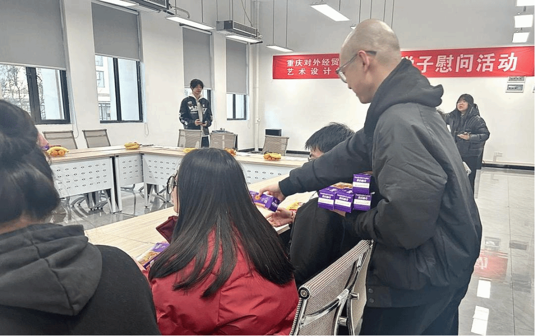 12月14日下午2:30,跨境商务学院在B1115教室举办考研慰问活动。院长赵逖、党总支书记任伟、副院长李艳、组织员兼办公室主任刘坤奇、团总支书记兼学生工作办公室主任蒋思维、学生会指导老师彭瑞以及学院老师出席本次活动。他们为全体考研学子送上祝福,也为考研学子们送上了特别准备的定制糖果、定制钥匙、零食礼包、手写祝福卡片、保暖物资、励志标语边角夹、金榜题名中性笔以及励志系列便利贴等慰问品,鼓励考研学子把握当下,沉着应考,摆脱焦虑,保持良好心态和作息,注意身体健康,关注考试注意事项,持之以恒,勇往直前,不负青春,一战成研!