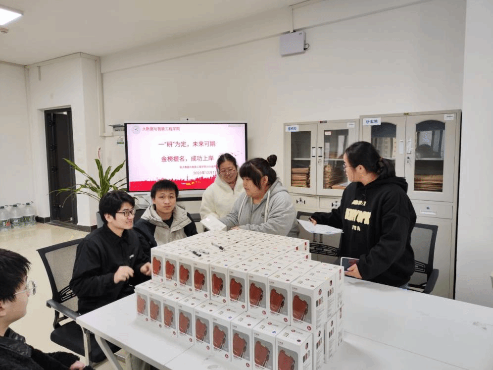 12月11日下午,大数据与智能工程学院在A9419教室举办考研慰问活动,勉励同学们在考研的关键时刻坚定考研的决心和信心,提醒同学们要保持复习节奏、调整考研心态,掌握考研细节,注意劳逸结合,找准应试状态。活动最后,学院还向考研学子发放了寓意鸿运当头的考研慰问品,祝福考研学子们一战成硕、顺利上岸。