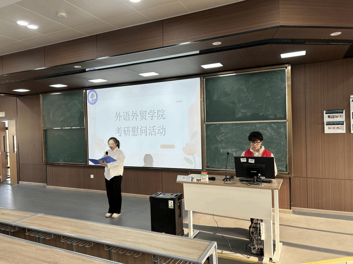 12月5日下午4:00,外语外贸学院在B8407教室组织开展了“情暖考研路,助力考研行”考研慰问活动。在全场富有感染力、鼓舞考研学子士气的大合唱中,院长李霓、考研指导老师团队负责人王宝川老师、2024届毕业生辅导员、各年级组长们亲切慰问并为考研学子们发放了慰问品。他们鼓励考研学子们坚持到底不放弃,保持良好心态,注意劳逸结合,以昂扬姿态冲刺“最后一公里”,全力奔向自己的理想高校。同时衷心祝愿每一位考研学子都能得偿所愿,金榜题名!