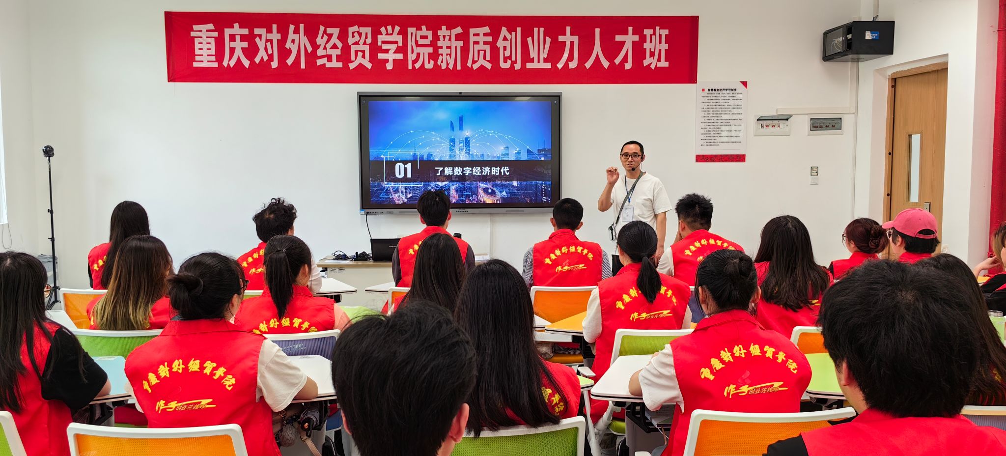 重庆合川小微企业家联合会会长、创新创业导师姜维在领学环节中指出:我们要积极传承卢作孚先生所倡导的“学校不是培育学生,而是教学生如何去培育社会”的办学主张。学校办学最首要的功能是育人,在育人的过程中有效地结合社会实践,把握数字经济时代发展动向,搭建校企合作平台以实现对学生培养、对社会改造的目的。希望大家一定珍惜机会,融入教学培训中来,学好数字化技能知识,提高思想认识,为即将毕业走入社会成功就业创业奠定坚实基础。