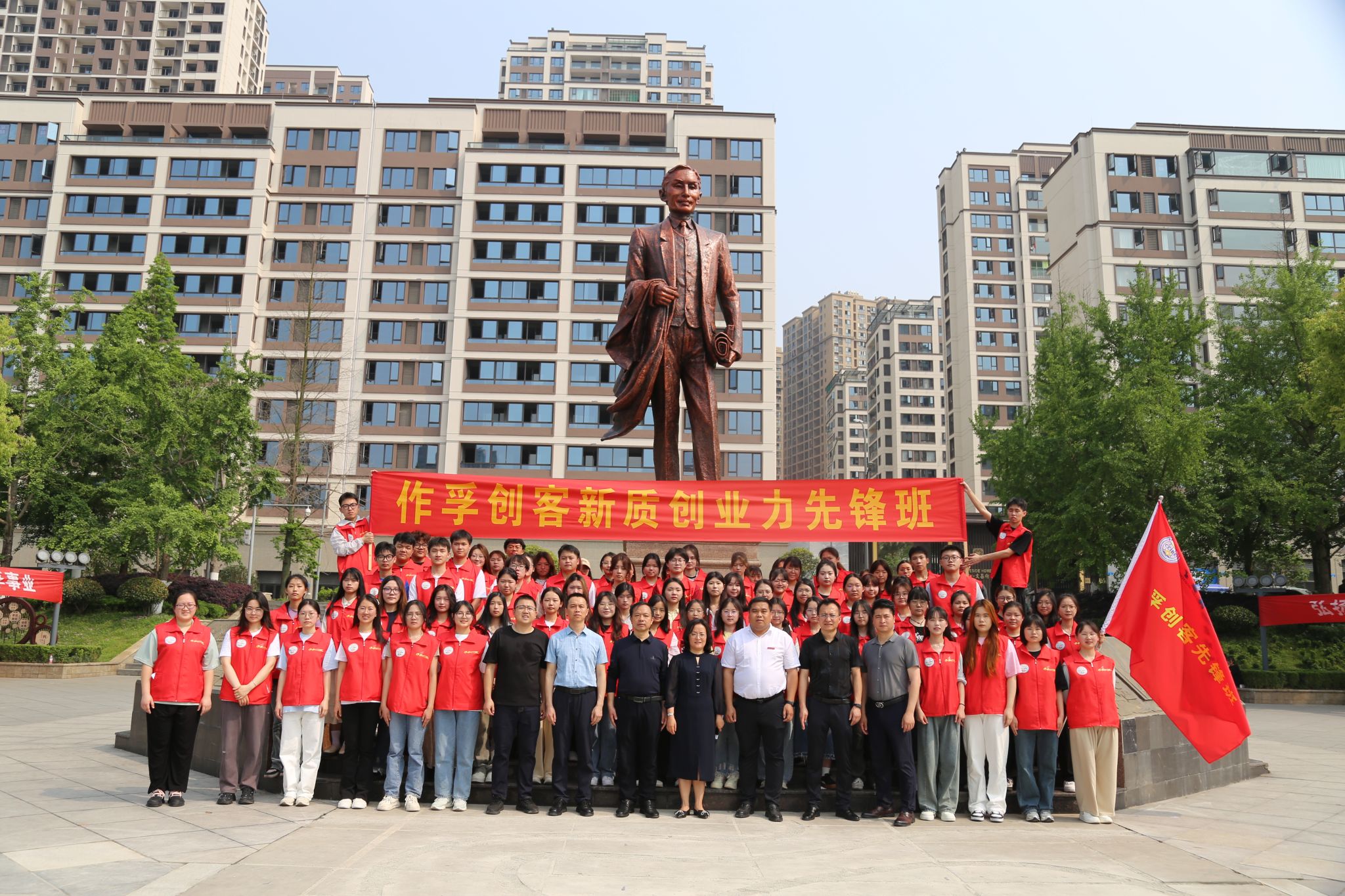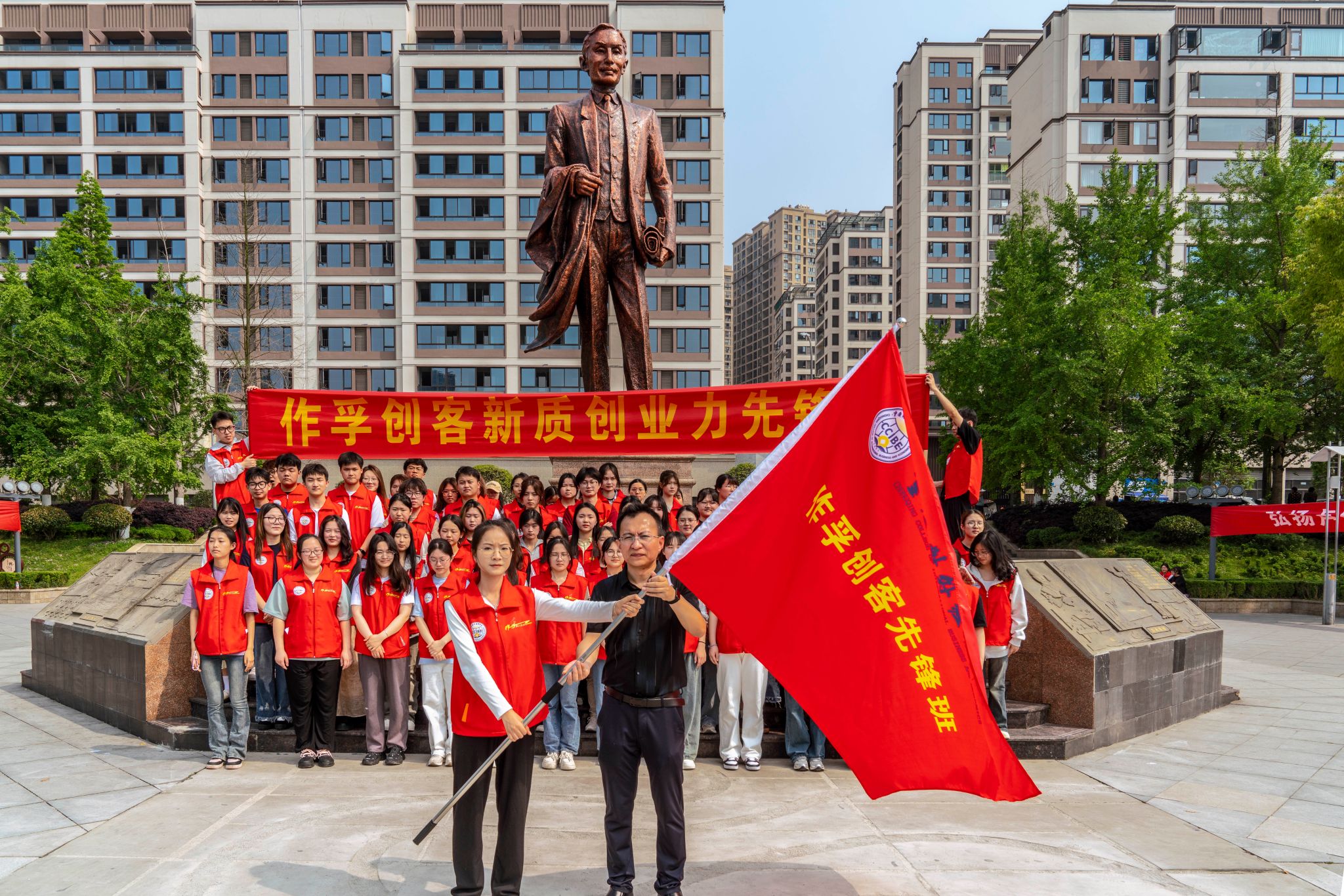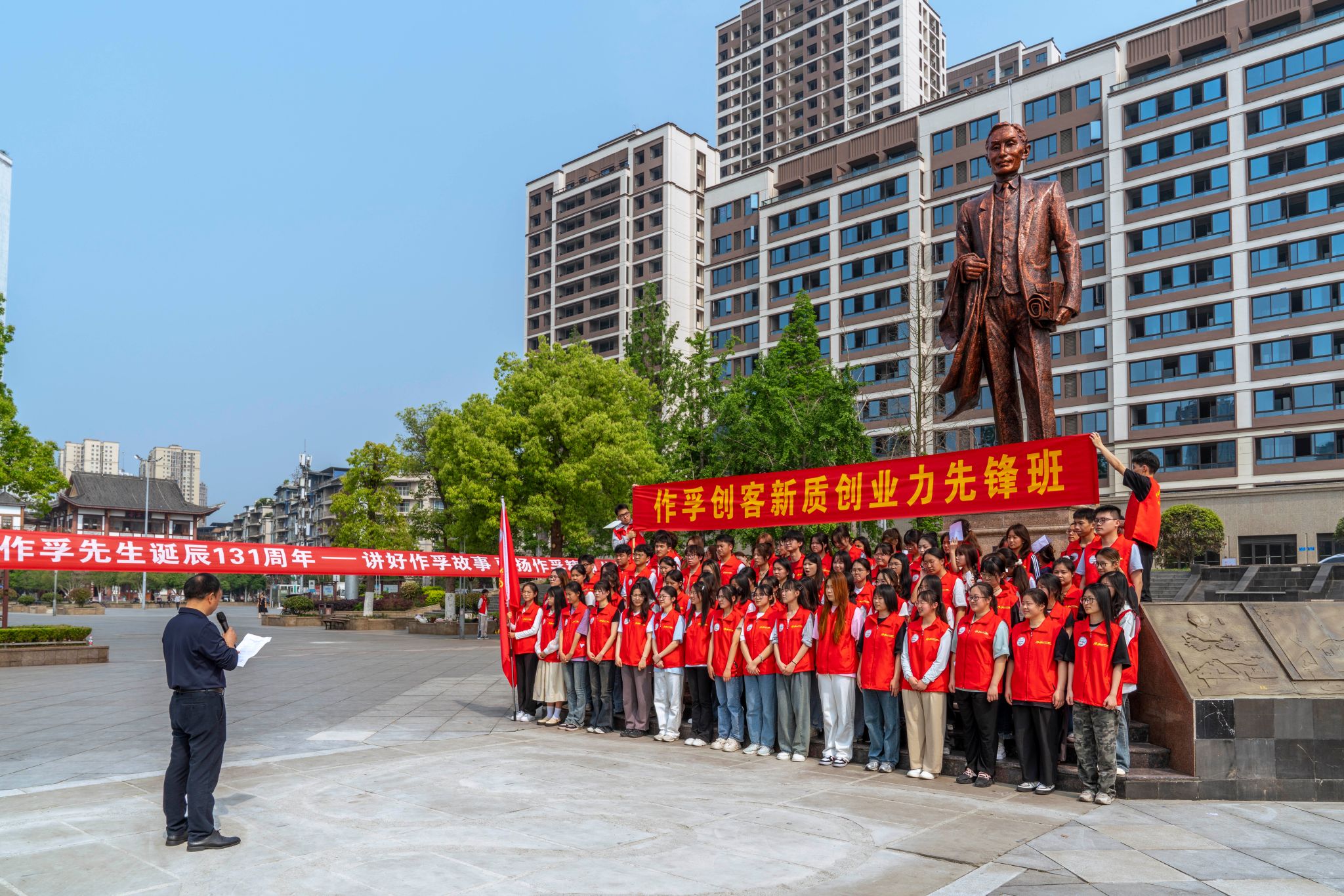 为纪念卢作孚先生诞辰131周年,近日,重庆合川举行了“作孚周”系列活动。4月15日,在合川区委统战部的指导下,在合高校统战联盟的6所高校组织2024届毕业生代表前往合川卢作孚纪念广场举行“作孚创客新质创业力先锋班”开班仪式,以此来表达对卢作孚先生创业精神的传承。区委统战部、区人社局、区就业和人才中心、创新创业导师、在合高校师生代表等共计131人参加了本次活动,本次活动由重庆对外经贸学院作孚创客学院与区高校统战联盟联合承办。