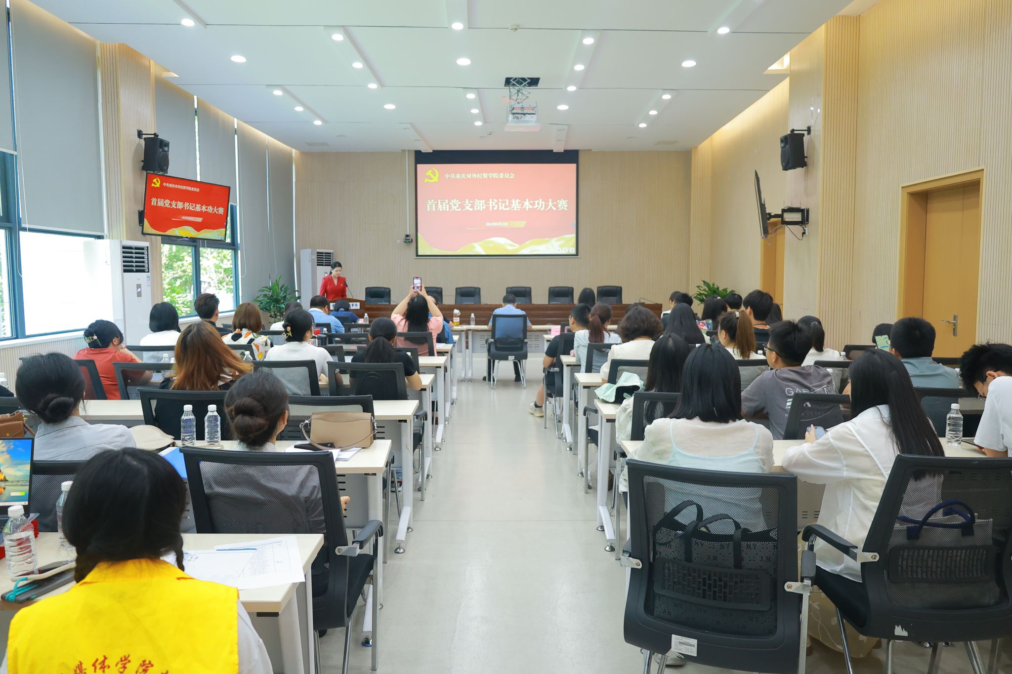 本次比赛分为教师党支部书记和学生党支部书记两个赛道,分为笔试环节和理论宣讲、现场答辩复赛环节,全校共有31名基层党支部书记参赛。6月6日笔试结束后,共有12名支部书记进入决赛。6月12日下午党支部书记基本功大赛决赛在9106会议室拉开帷幕,经过激烈角逐,教师党支部书记组曹颖获一等奖,刘倩、周洋获二等奖,秦瑶、刘仲慧、任晓珠获三等奖;学生党支部书记组段瑞获一等奖,廖婷婷、谭燕获二等奖,王畅、秦春雪、朱丽婷获三等奖。