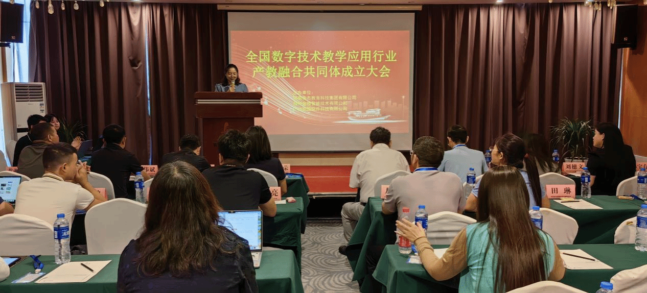 全国数字技术教学应用行业产教融合共同体召开了第一次理事会,学校以理事长单位参加,就产教融合共同体未来发展提出了建设性意见和建议。