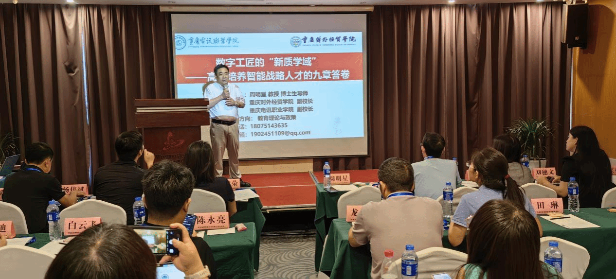 周明星副校长围绕数字技能人才培养作主题发言,分享了学校在数字技能人才培养的探索与实践。他强调,面对数字化转型的迫切需求,我校始终坚持以市场需求为导向,深化教育教学改革,加强校企合作,努力构建产学研用一体化的育人体系,培养具有创新精神和实践能力的数字技能人才。