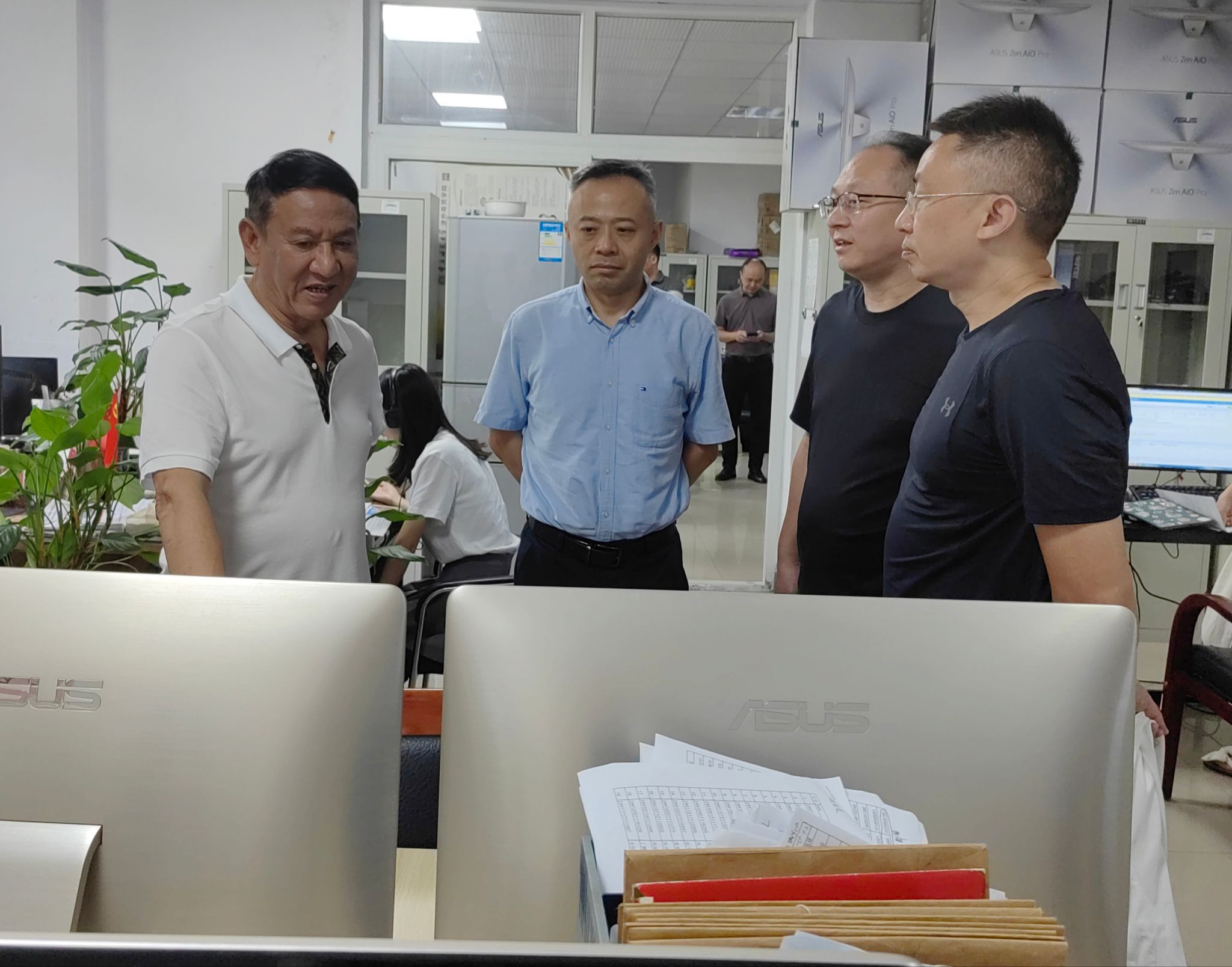 郭元新理事长一行先后到财务处、后勤管理处、招生处、信息技术中心等单位了解暑期工作开展情况,详细询问招生录取、基建维修、网络安全和后勤保障等情况,对奋斗在一线的教职员工表示诚挚感谢和慰问。
