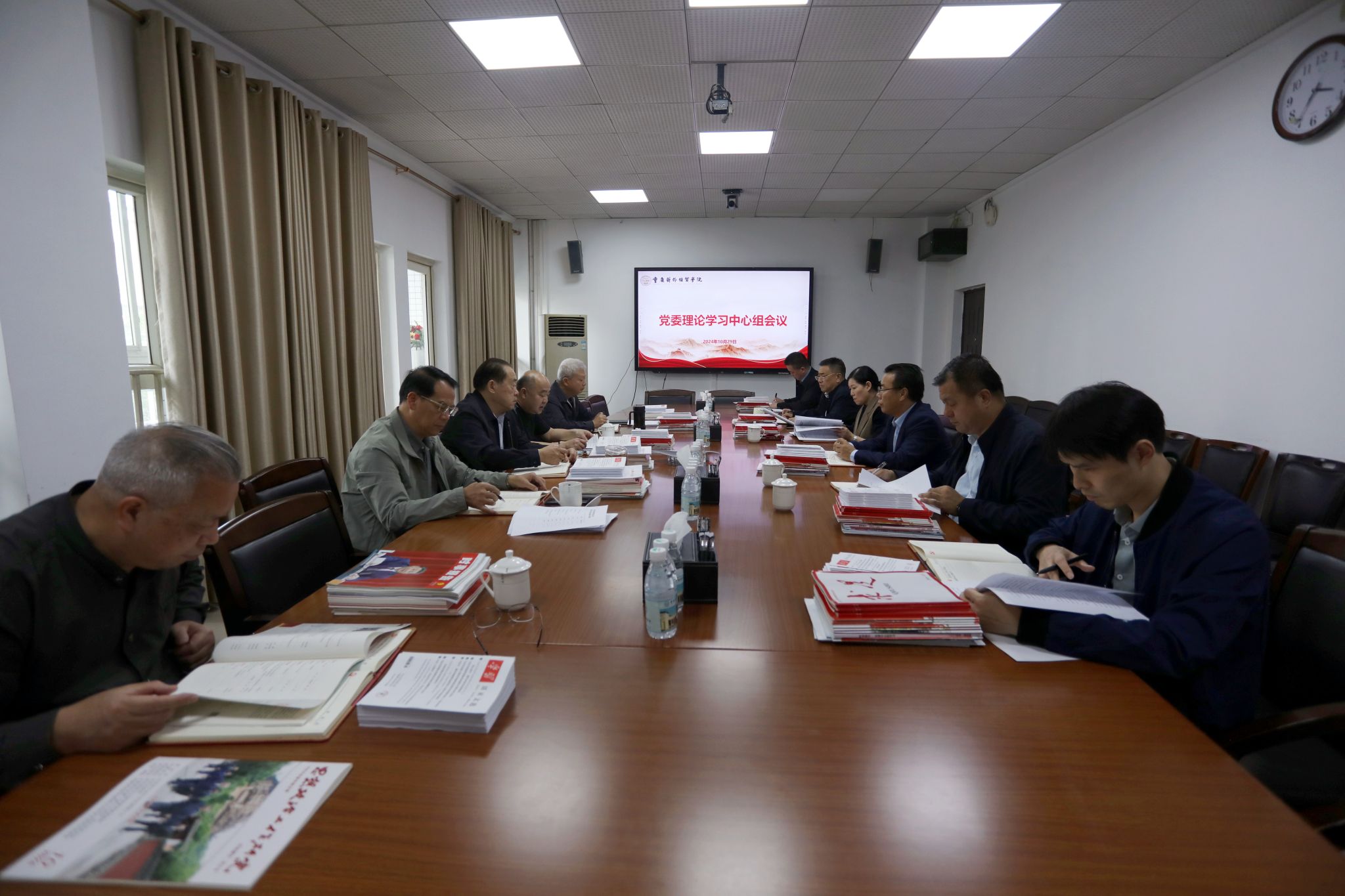 10月29日,学校召开党委理论学习中心组会议,专题学习习近平在2024年全国教育大会上的重要讲话精神、中共重庆市委六届六次全会精神。会议由党委书记、督导专员何大海领学,在家校领导出席会议,党委委员,纪委委员,党政办、宣传部负责人参加会议。
