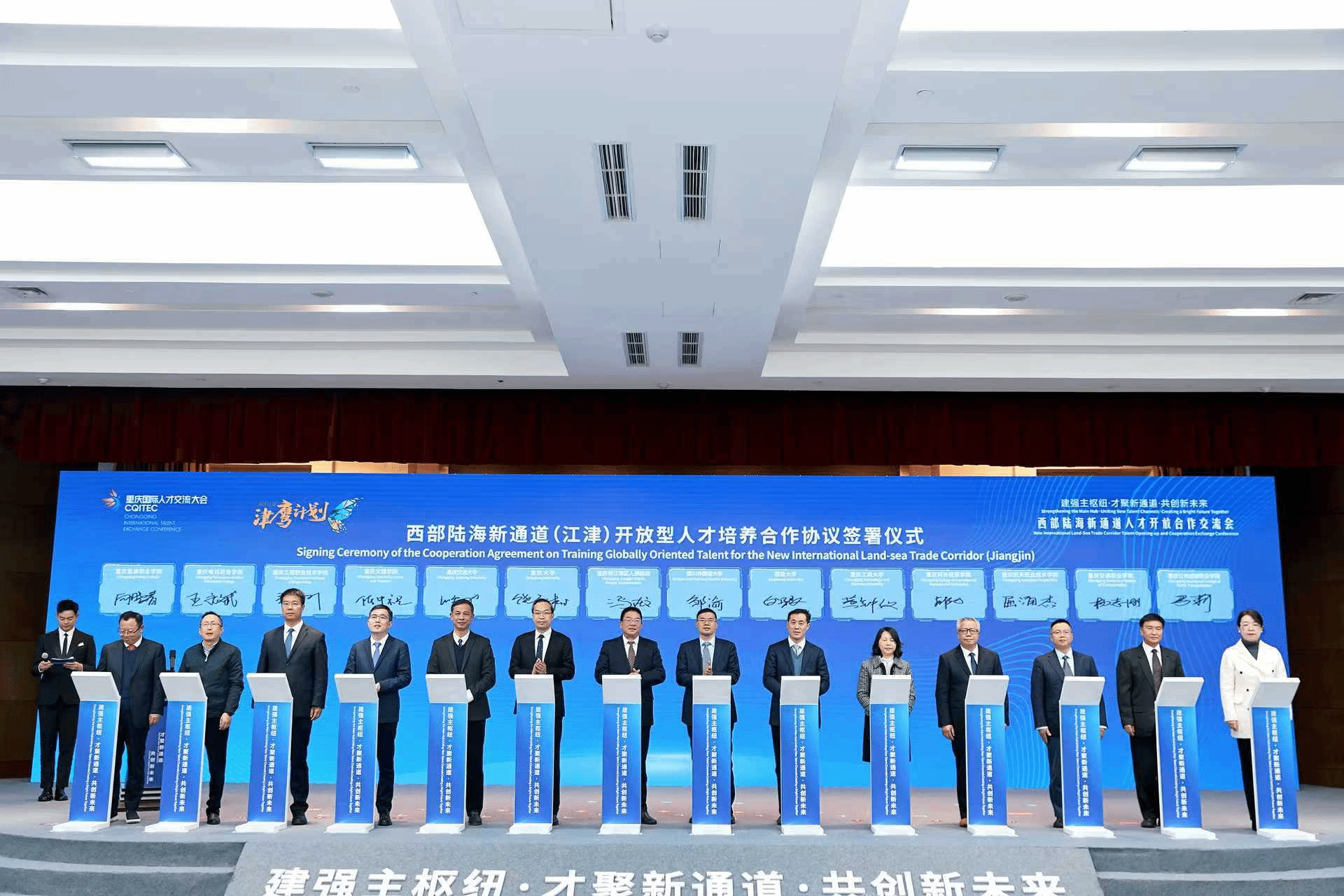会上,学校与江津区签署了《西部陆海新通道(江津)开放性人才培养合作协议》,就西部陆海新通道沿线重点城市在协同建立人才政策制度、打造人才发展平台、开展招才引智活动等方面内容达成合作。