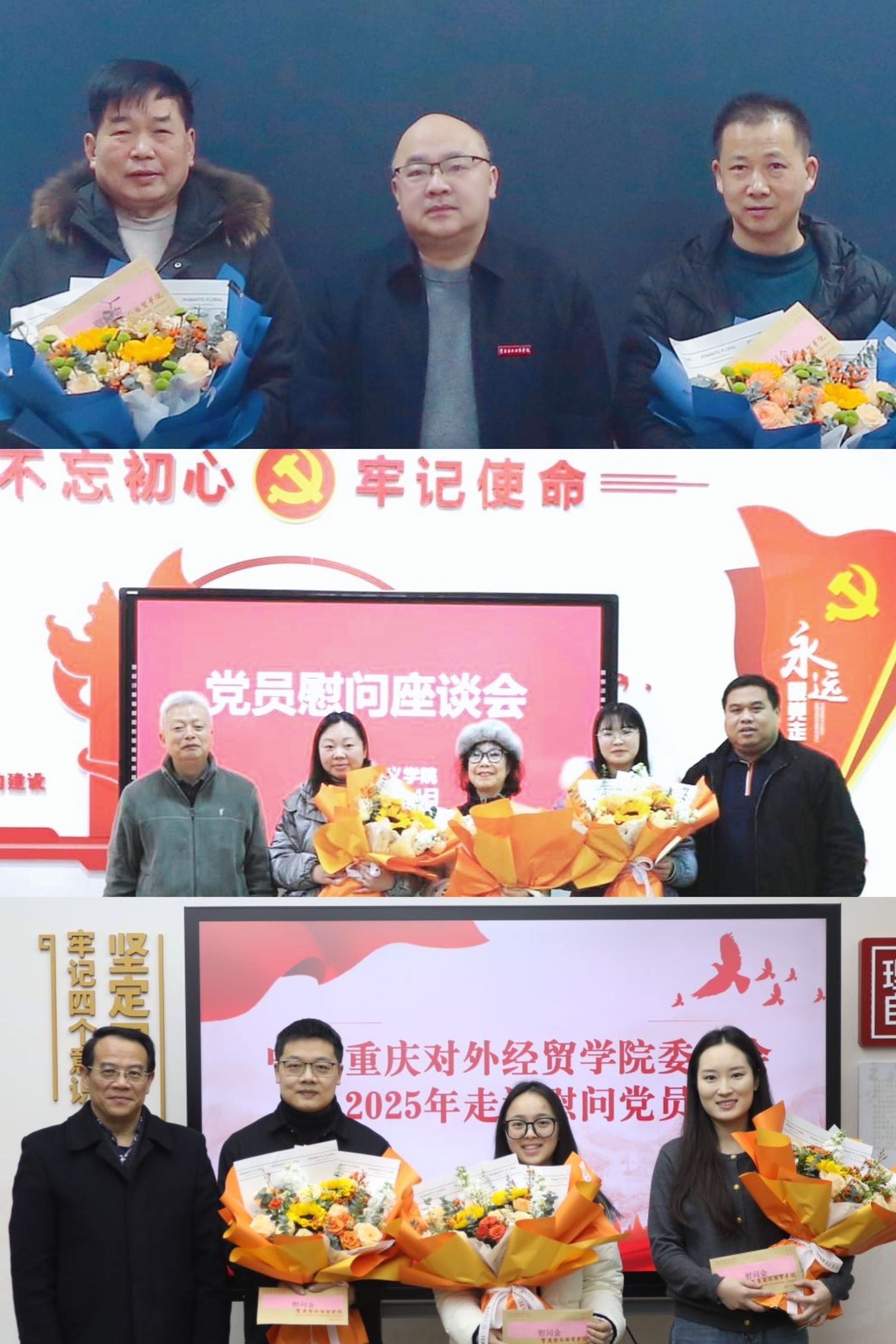 校领导为老党员和困难党员送上鲜花和慰问金