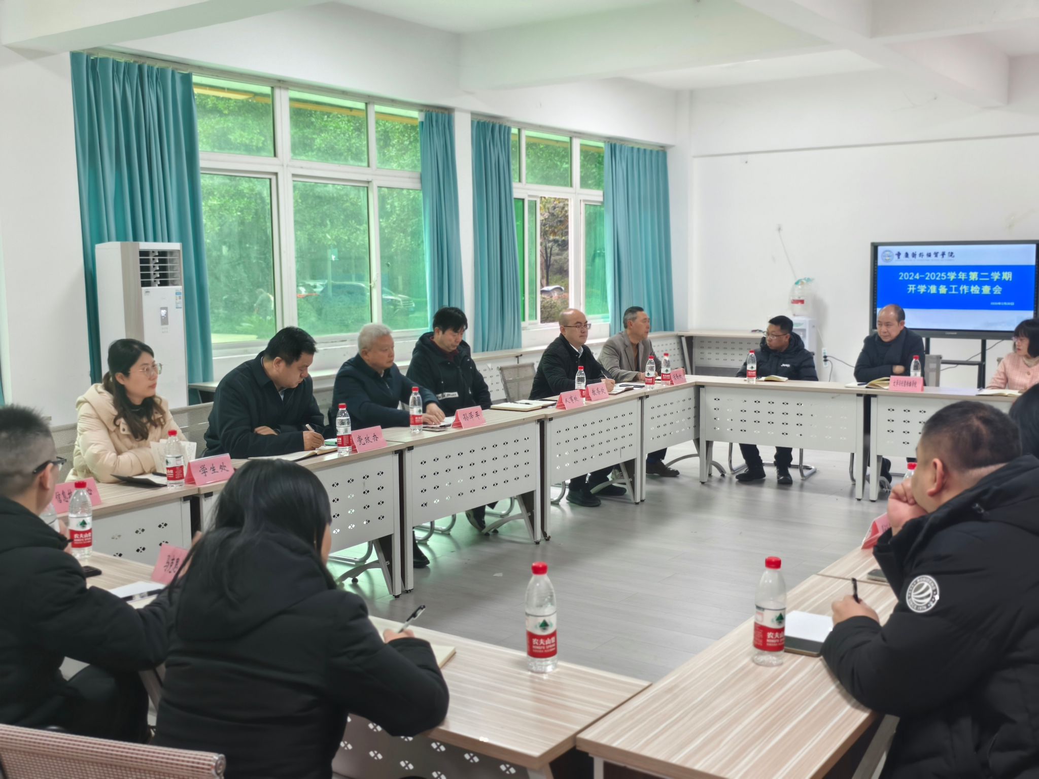 校领导着重听取了各职能部门和二级学院有关教师职工返岗、教学设施设备排查与运行等情况的汇报。对于各部门在开学前付出的努力以及所取得的成果,校领导给予了充分肯定,指出这些扎实有效的工作为新学期迎接同学们顺利返校奠定了牢固的基础。同时,校领导提出,要结合新学期的工作实际情况,积极引导广大师生员工尽快恢复到正常的学习与工作状态,以充沛的精神面貌、务实的工作态度,围绕学校的重点工作,增强责任意识,为师生营造良好的工作、学习、生活环境,全力推动学校各项事业取得新发展、实现新跨越。