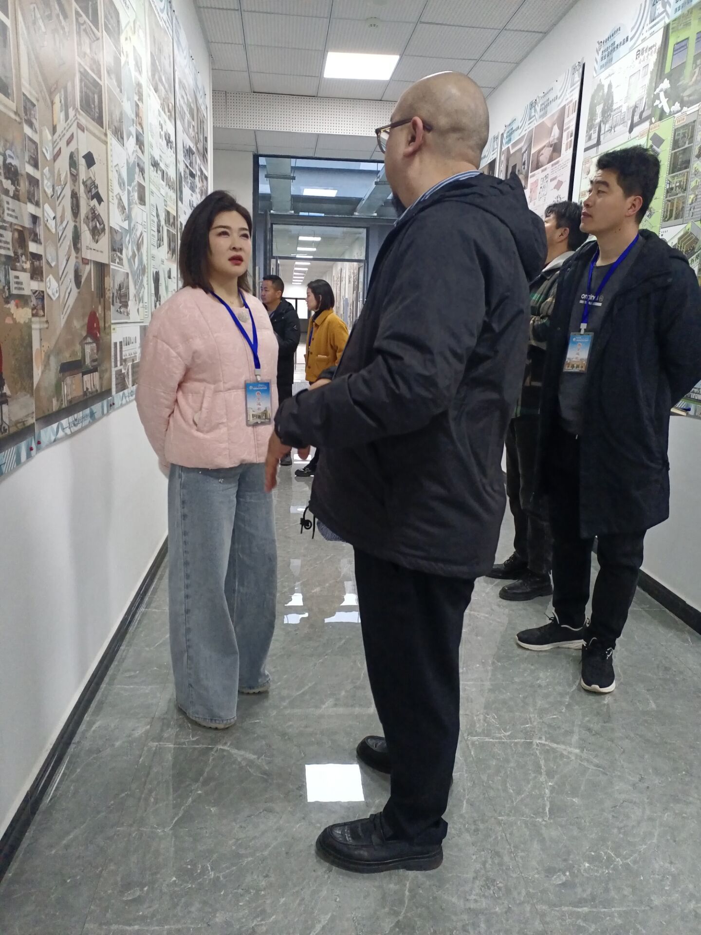 图四 副校长王婕与教学单位就学院文化墙打造进行交流