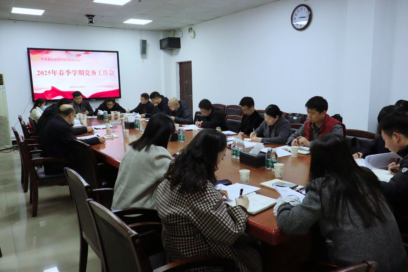 何大海指出,2025年是“十四五”规划的收官之年,也是学校本科教学工作合格评估的关键之年。他就进一步做好新学期党务工作强调了四点意见:一是坚持问题导向,高质量完成年检反馈的问题整改工作,做好自查出来的党员发展、组织关系转接、党费收缴管理使用等方面问题整改工作,持续推进规范化建设;二是强化理论武装,做好党员教育培训工作,抓实教职工理论学习,学好用好《习近平关于党的建设重要论述》,贯彻落实 《全国党员教育培训工作规划(2024-2028年)》,确保党员应训尽训,提升党员政治素质和业务能力;三是层层落实意识形态工作责任制,加强意识形态阵地建设和管理,强化“三审三校”,牢牢把握意识形态主动权、领导权;四是围绕中心,服务大局,聚焦学校本科教学工作合格评估,构建“党建+评估”融合模式,紧密围绕本科教学工作合格评估重点任务,找准党建工作的切入点和结合点,发挥党组织战斗堡垒和党员先锋模范作用。