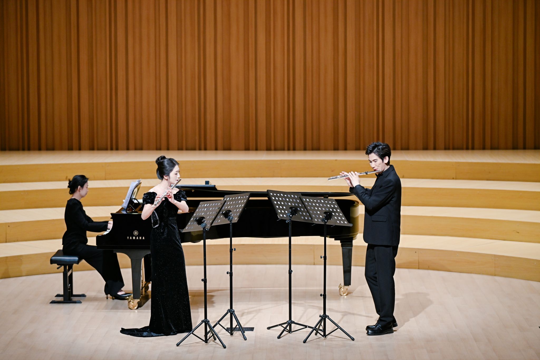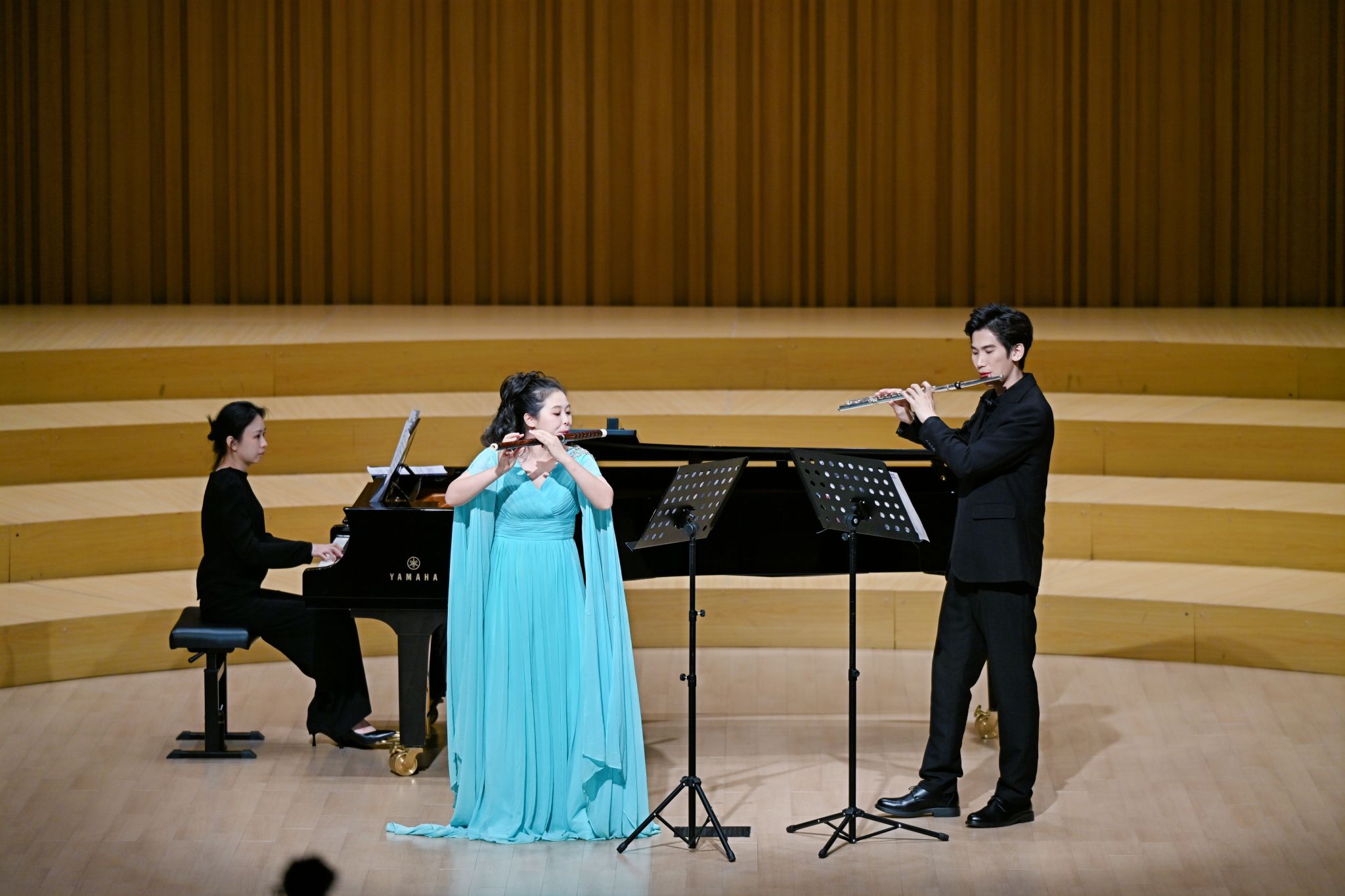 “笛声何处”既呼应东方美学的诗意留白,又与长笛的空灵音色形成文化共鸣。这场演出以西方长笛为载体,展现了西方音乐的结构之美,又暗合东方艺术的意境之韵,实现了中西音乐文化的巧妙对话。