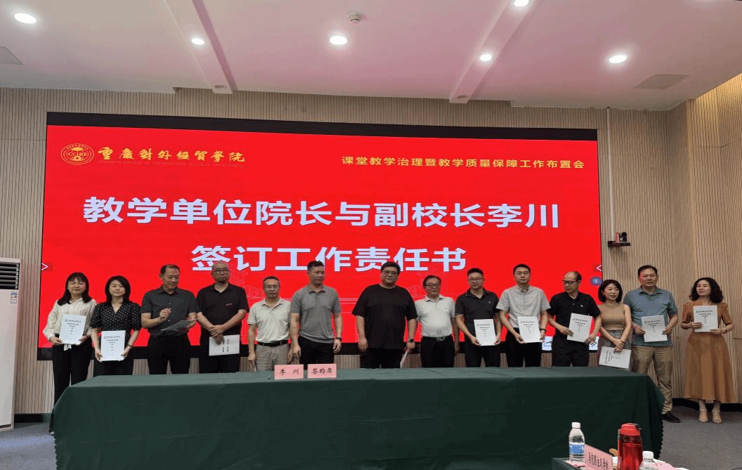 会议伊始,质管办、教发中心、学生处、人事处负责人分别解读了课堂教学综合治理专项工程实施方案、教师培养培训方案、学风建设方案、教师管理要求等。副校长李川与各教学单位院长签订《课堂教学综合治理工作责任书》,明确了课堂教学综合治理任务、时间节点及质量要求,构建“层层担责、级级落实”的工作格局。