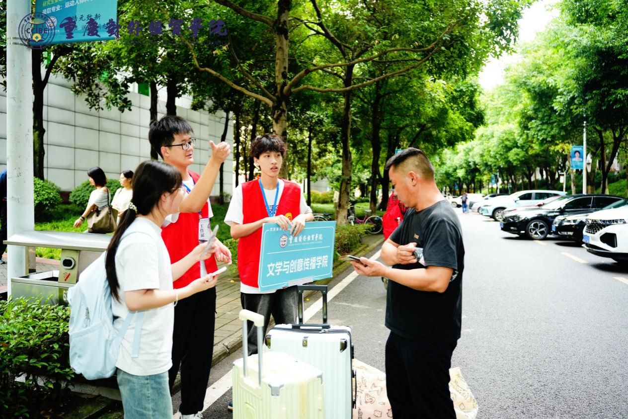 为迎接新生,学校各部门协同联动,精心组织了便捷高效的报到流程。报到现场,各学院的领导、老师和志愿者以热情、周到、负责的态度投入工作。他们指引各学院新生完成报名、缴费、领取物资和寝室入住等流程,努力为新生营造良好的报到环境。同时,校内还安排了休息区、免费领水区、行李寄存区,为新生及家长提供便利。校园各个角落都能看到志愿者的身影,他们主动上前帮忙,耐心解答新生们的疑问,为学弟学妹们提供贴心服务,让新生们感受到学校的关怀与爱护。