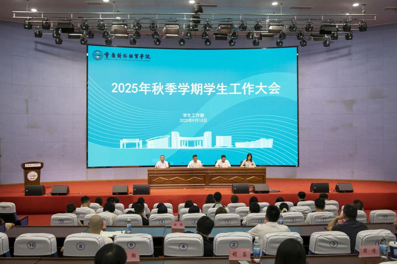 【本网讯】9月10日,学校在合川A校区9101学术报告厅召开2025年秋季学期学生工作大会。副校长李川出席会议并讲话,学生处处长伍祥伦、副处长周昊、各学院党总支书记(副书记)以及全体学工人员参加会议。会议由学生处副处长汪嫔嫔主持。