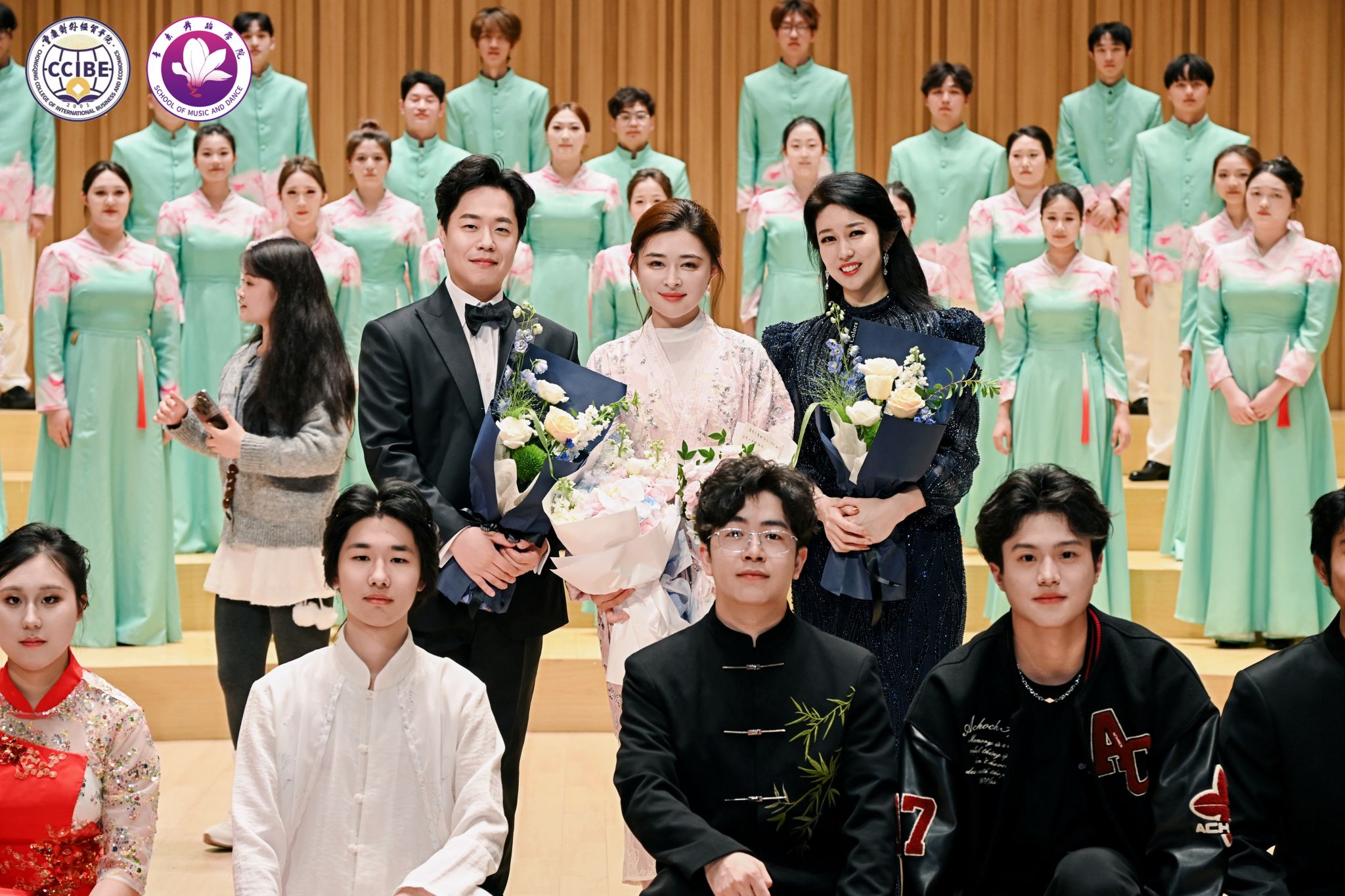 中外艺术融合环节中,韩国歌手李明铉、朴秀珍合作的普契尼歌剧《波西米亚人》选段《冰凉的小手》《人们叫我咪咪》以及浪漫二重唱《多么美丽的姑娘》实现了文化共鸣;尾声的合唱《细雨飘》(重庆酉阳民歌改编)与校歌《经世经贸》,将地方文化与校园精神相融,引发全场情感共鸣。