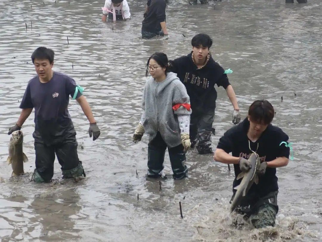 活动尾声,工作人员依据抓鱼数量与重量统计排名并现场公布结果,并将各学院、机关自主捕获的鲜鱼作为专属奖品颁发。每人手持一条鱼,一同合影留念,将这美好瞬间永久定格。
