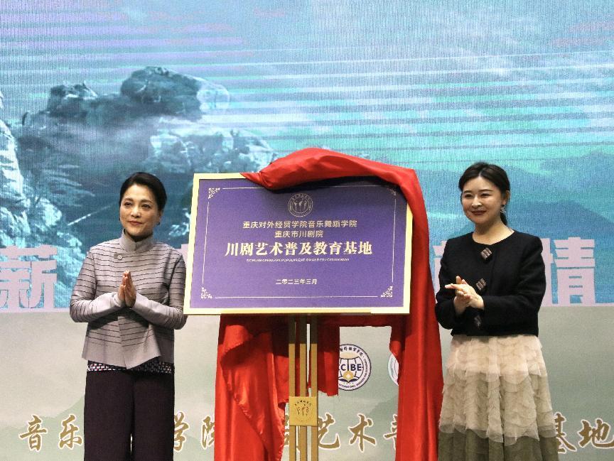 春暖花开,草长莺飞,川剧艺术与高校完美“邂逅”,共同诠释“薪火相传,根情同在”。2023年3月21日,川剧艺术普及教育基地揭牌仪式在重庆对外经贸学院隆重举行,掀起深入学习贯彻党的二十大精神、送戏进校园系列活动的新高潮,收获了十分热烈的反响。重庆市人大常委会副主任沈金强,合川区委常委、区委书记郑立伟,市文旅委一级巡视员江卫宁,区人大常委会主任程卫,市文联主席、重庆市川剧院院长沈铁梅,区政府副区长袁晓钦,区政协副主席莫智红莅临活动现场,区政府、区委宣传部、区文旅委、区文联、区社科联、区文化馆、区音协、区剧协、市文旅协会相关负责人以及郭元新理事长等相关校领导、师生代表一行出席揭牌仪式。仪式由重庆对外经贸学院音乐舞蹈学院副院长费毓珺主持。
