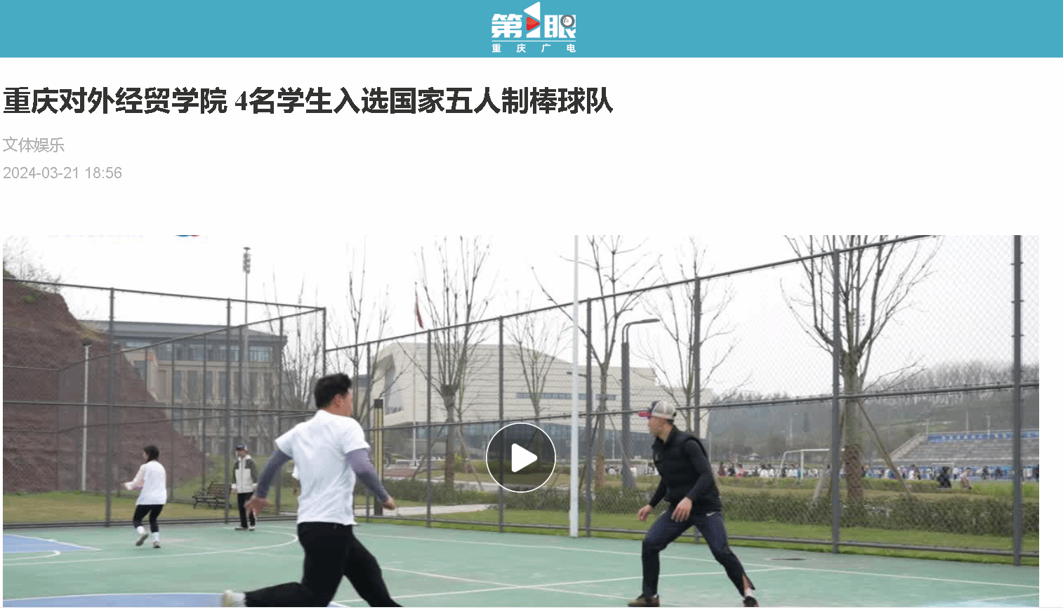 【第一眼新闻】报道重庆对外经贸学院4名学生入选国家五人制棒球队