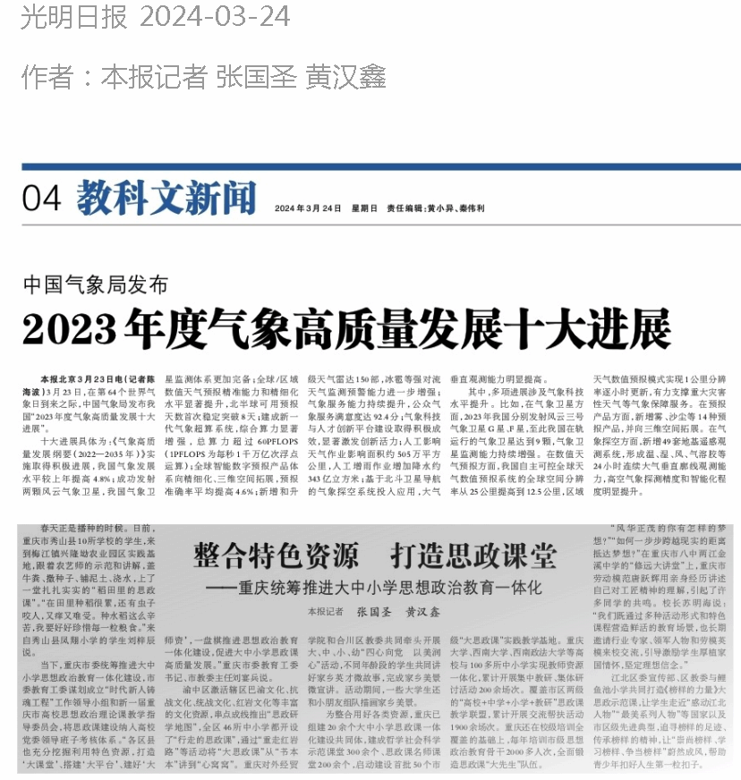 【光明日报】报道重庆统筹推进大中小学思想政治教育一体化