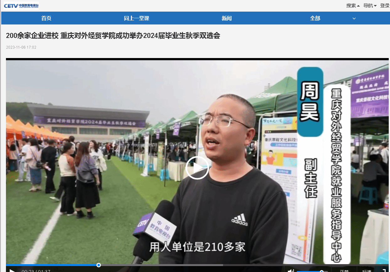 中国教育电视台:《200余家企业进校 重庆对外经贸学院成功举办2024届毕业生秋季双选会》