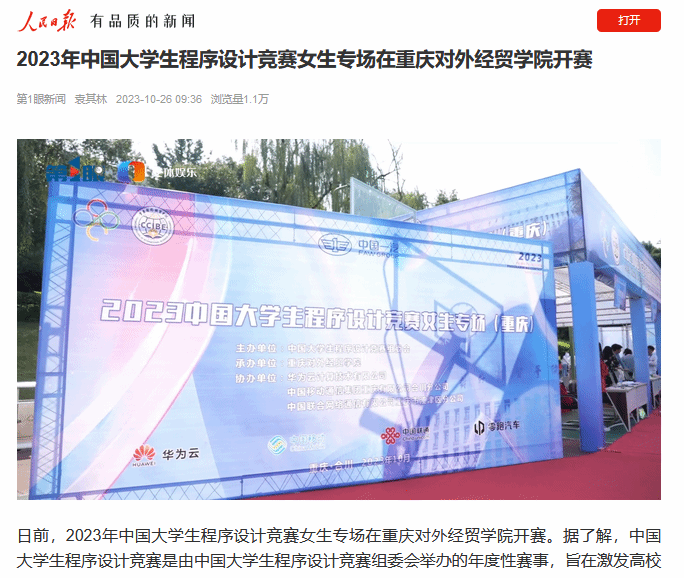 人民日报:《2023年中国大学生程序设计竞赛女生专场在重庆对外经贸学院开赛》