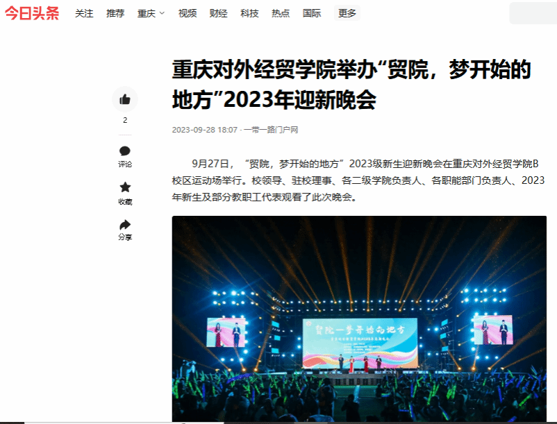 今日头条:《重庆对外经贸学院举办“贸院,梦开始的地方”2023年迎新晚会》