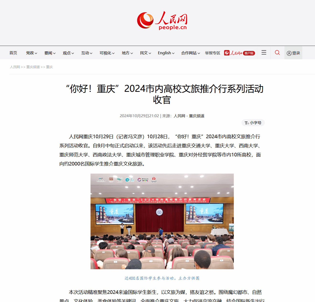 人民网报道“你好!重庆”2024市内高校文旅推介行系列活动收官