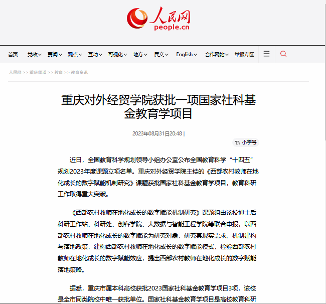 人民网:《重庆对外经贸学院获批一项国家社科基金教育学项目》