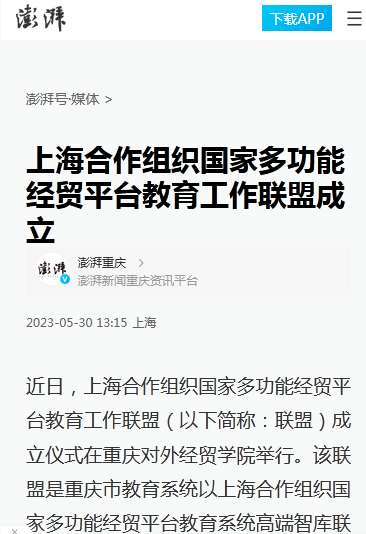 澎湃新闻:《上海合作组织国家多功能经贸平台教育工作联盟成立》