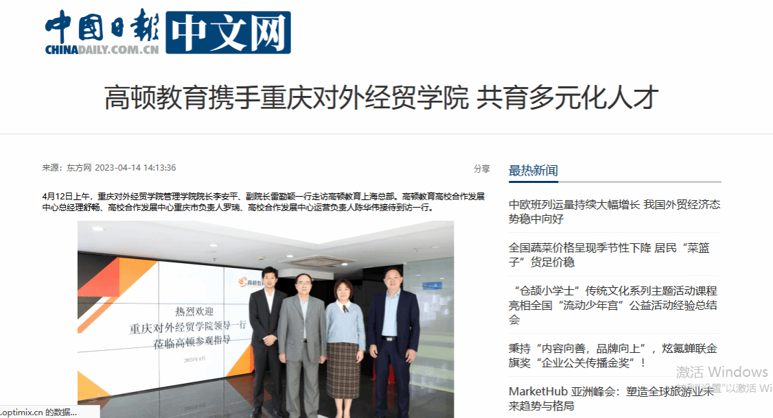 中国日报网:《高顿教育携手重庆对外经贸学院 共育多元化人才》