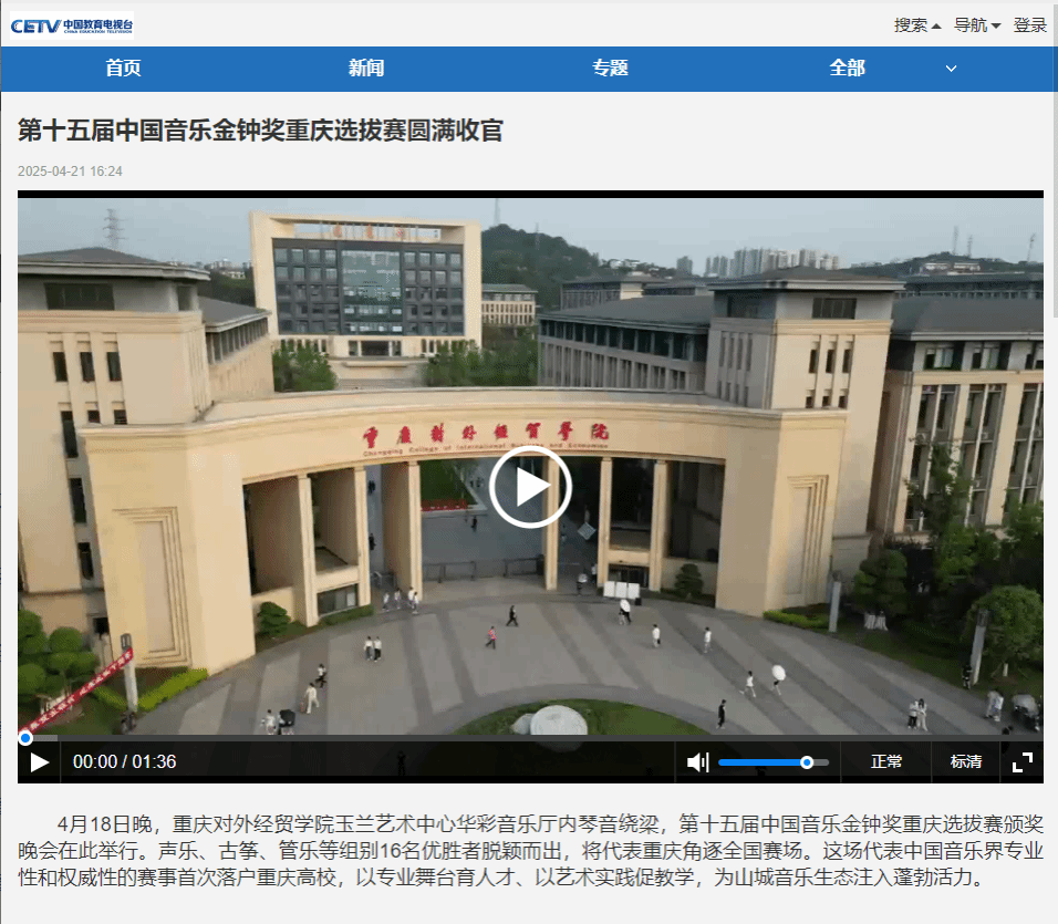 重庆对外经贸学院成功承办第十五届中国音乐金钟奖重庆赛区选拔赛,3名选手入围全国赛