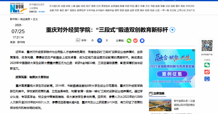 新华网报道重庆对外经贸学院:“三段式”锻造双创教育新标杆