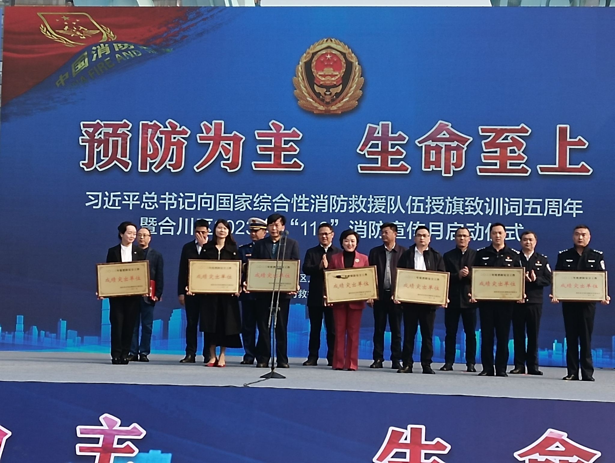 11月9日,重庆对外经贸学院派40余名师生代表参加了合川区2023年“119”消防宣传月启动仪式暨消防工作颁奖活动,学校凭借良好的消防安全工作和消防安全环境建设,荣获合川区2023年度消防工作成绩突出单位,在25个获奖单位中,学校是唯一高校获得者;同时学校前期经过几轮消防安全知识演讲比拼,池佳惠同学参加了当日合川区大学生消防主题现场演讲比赛,荣获一等奖,为学校再添荣誉。