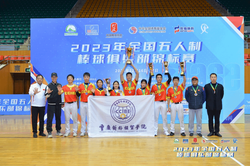 本次比赛学校代表队经过7轮激烈的比拼,最终荣获2023年全国“五人制”棒球锦标赛高校组冠军。队员唐国、王家娓两人荣获高校组“得分王+安打王”。