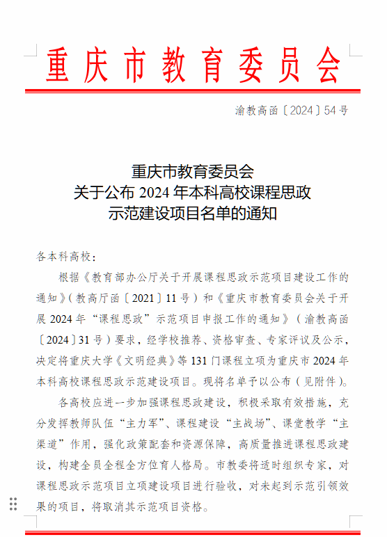 【本网讯】近日,重庆市教育委员会下发《关于公布2024年本科高校课程思政示范建设项目名单的通知》(渝教高函〔2024〕54号),我校艺术设计学院彭丽教师团队申报的《景观规划设计》课程入选重庆市课程思政示范课程、课程授课教师和教学团队入选重庆市课程思政教学名师和团队。课程团队有彭丽、张翌、王德印、乐华、关钰婷、吴穹、张梦娜、卢窈8位教师。