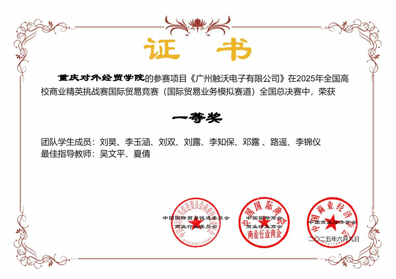 【本网讯】6月5日至6月9日,第十五届全国高校商业精英挑战赛国际贸易竞赛在宁波国际会展中心7号馆隆重举行。本届赛事由中国国际贸易促进委员会商业行业委员会主办,吸引全国198所高校的408支队伍、逾3300名师生同场竞技。我校由跨境商务学院牵头组建的2支代表队,历经八个月的备战,最终斩获全国一等奖1项、二等奖1项及最佳院校组织奖1项,创下我校在该项国家级B类学科竞赛中的最佳战绩。
