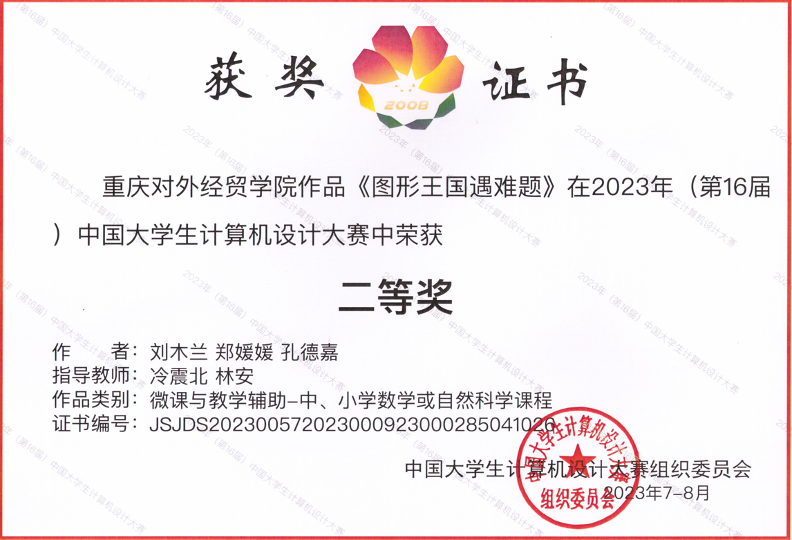 2023年(第16届)中国大学生计算机设计大赛“微课与教学辅助类”的决赛分别在东北大学落下帷幕,学校共有3支队伍参加比赛;最终,1支队伍获得全国二等奖,2支队伍获得全国三等奖。