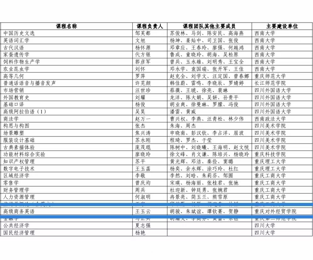 4月11日,教育部高等教育司公布第二批国家级一流本科课程认定结果公示文件,学校外语外贸学院商务英语专业王玉云教授团队(团队成员:胡骏、朱斌谊、谭钦菁、贺静主讲的高级商务英语课程成功入选为第二批国家级线下一流本科课程,实现了该项目从零到一的历史性突破。