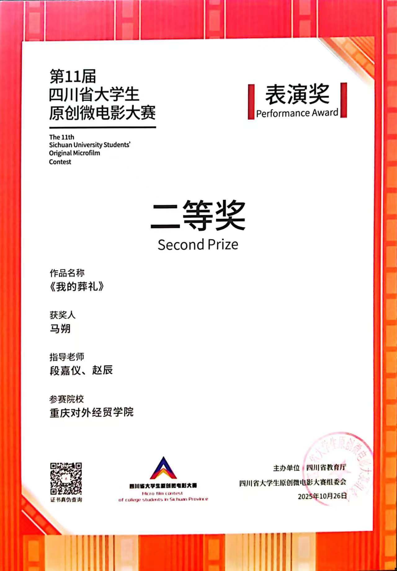 《我的葬礼》主演马朔获二等奖(指导教师:段嘉仪、赵辰)