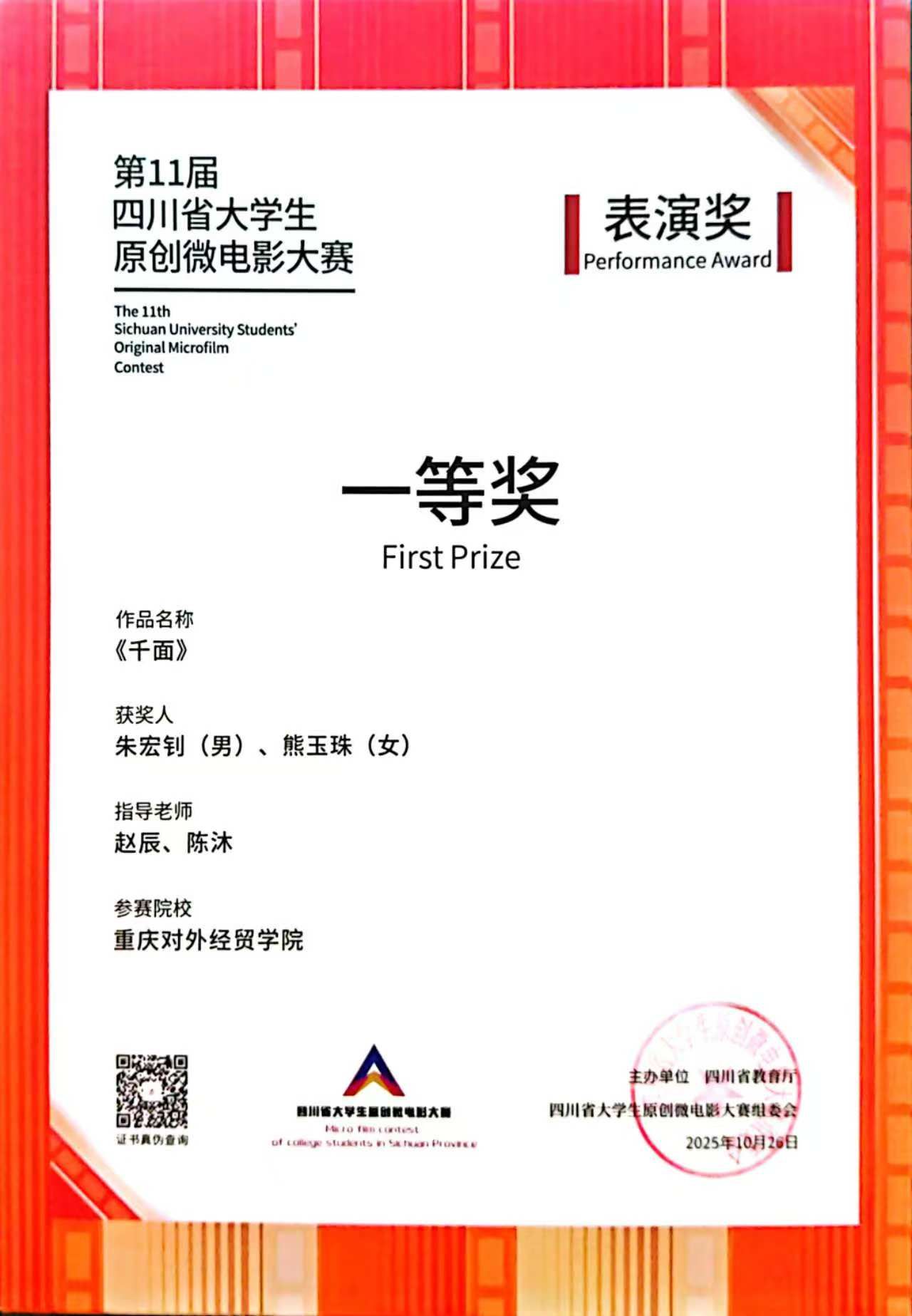 《千面》主演朱宏钊、熊玉珠获一等奖(指导教师:赵辰、陈沐)