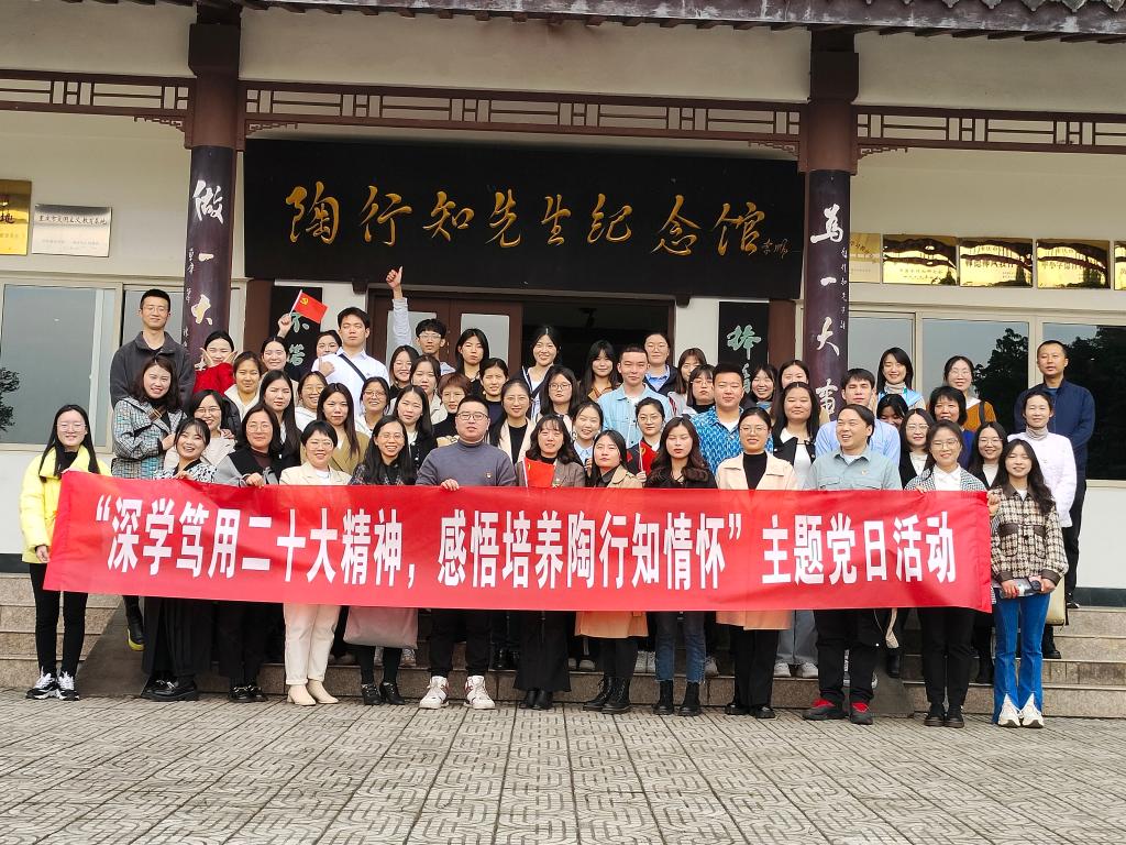 为深入学习贯彻党的二十大精神,牢记习近平总书记关于教育的重要论述,加强教师师德师风建设,跨境商务学院党总支于3月9日下午13:00组织前往重庆市合川区陶行知纪念馆开展“深学笃用党的二十大精神,感悟培养陶行知情怀”主题党日活动,部分师生党员、发展对象、积极分子代表参加了本次活动。