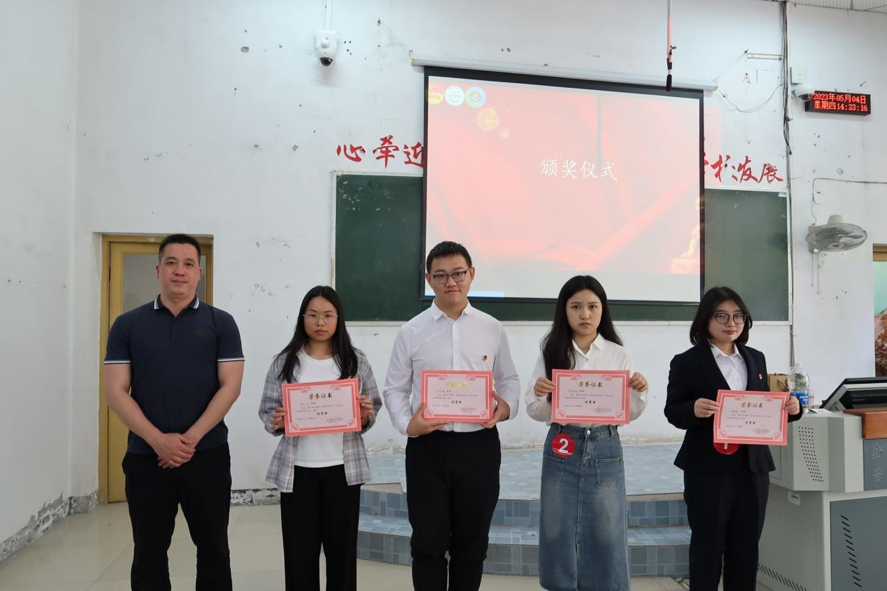 经过参赛者们声情并茂地演讲和评委们公平、公开、公正的评分,最终叶铭俊获得了本次演讲比赛的一等奖;陈红、刘鑫月获得了本次演讲比赛的二等奖;田欢、吴卓桑、梅丹获得了本次演讲比赛的三等奖;温红、王永楠、杨佳佳、申嫄媛获得了本次演讲比赛的优秀奖。由学院党总支书记谢冬,团总支书记刘云超,辅导员秦春雪、龚佑铮、罗恒分别为他们颁奖。